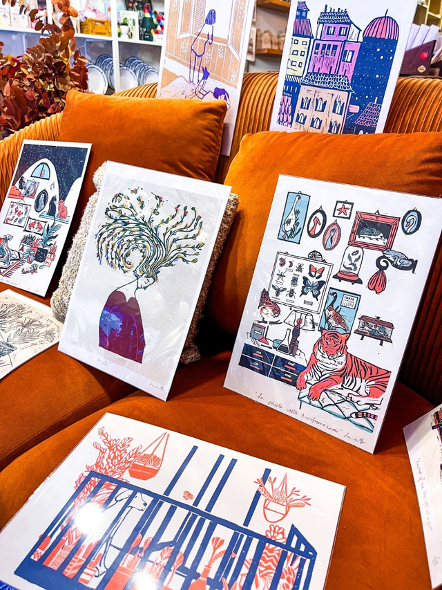Illustrazioni di Sara Bernardi di @amessystudio realizzate con la tecnica della linoleografia accompagnate da acquerelli su carta 220gr.